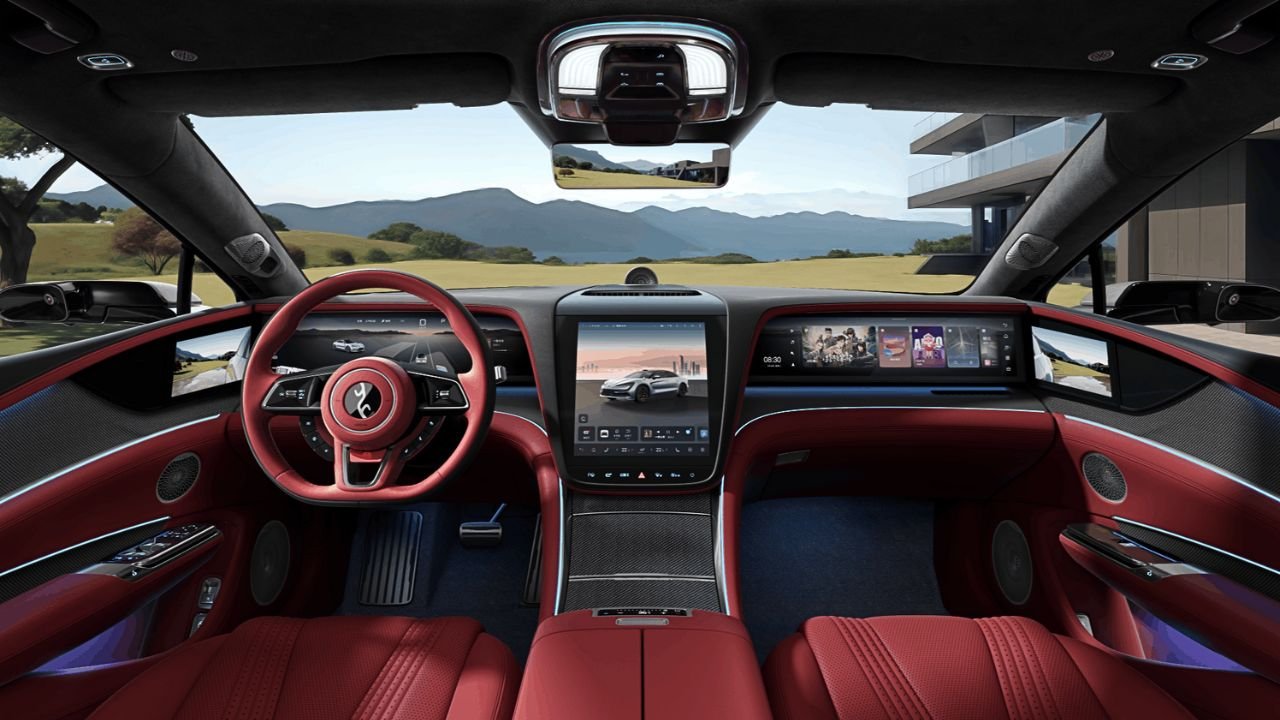 The vehicle’s striking features include its headlights, low sleek body profile, flush door handles, and attractive wheel designs. Also, you can just knock to open the doors.