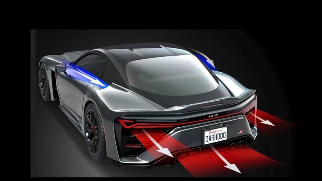 The GR GT’s skeleton is Toyota’s first all-aluminum body frame. This keeps rigidity sky-high while slashing weight. Styling is aggressive yet elegant with sharp creases, large air vents, underbody diffusers, and a wide, low-slung nose. The Toyota GR GT stands out, screaming “race-ready road rocket.”