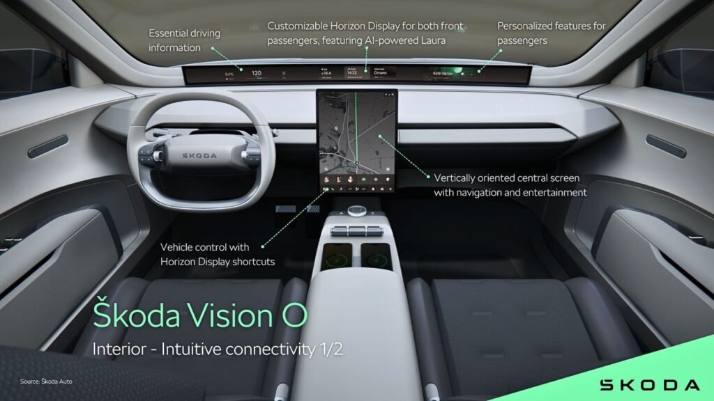 “At Škoda, our commitment to our customers—who have trusted us as leaders in the estate segment since 2016—drives us to deliver the Vision, O: a blend of innovative design, over 650 liters of luggage space, autonomous driving capabilities, and an intuitive AI assistant. This vehicle transforms every journey into an effortless, empowering experience while advancing our sustainability goals and elevating our modern solid design principles.” Klaus Zellmer, CEO of Skoda Auto